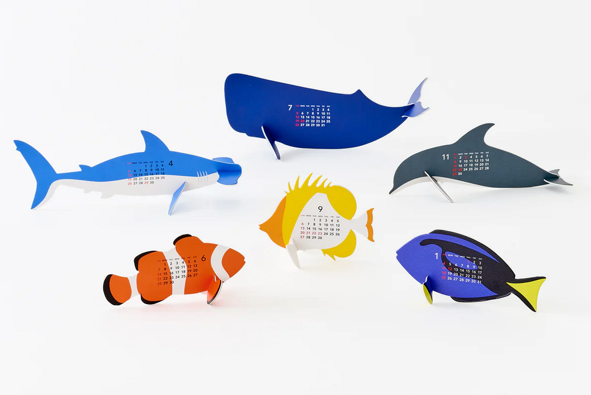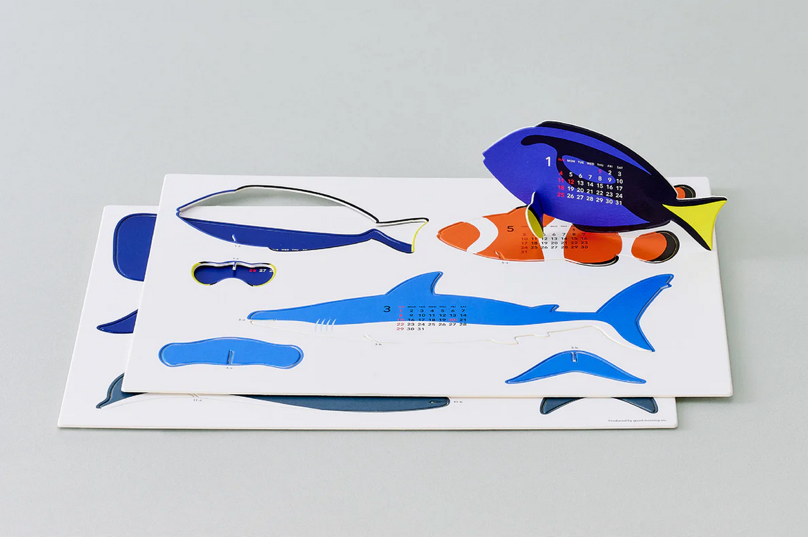 Ocean es un calendario de papel que se puede montar fácilmente sin utilizar pegamento ni tijeras. El conjunto incluye 6 tipos de criaturas marinas y, cuando se ensambla haciendo coincidir los símbolos de las piezas, se convierte en un calendario de 2 meses.