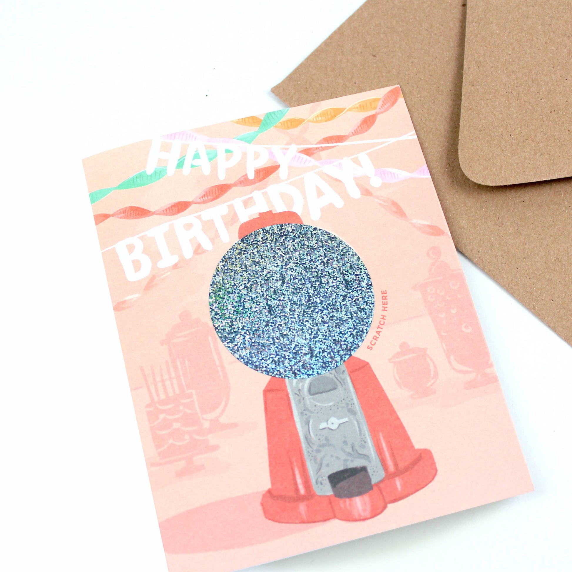 Esta tarjeta de cumpleaños es muy divertida. En la portada puedes leer Happy Birthday y un mensaje oculto en la máquina de chicles.