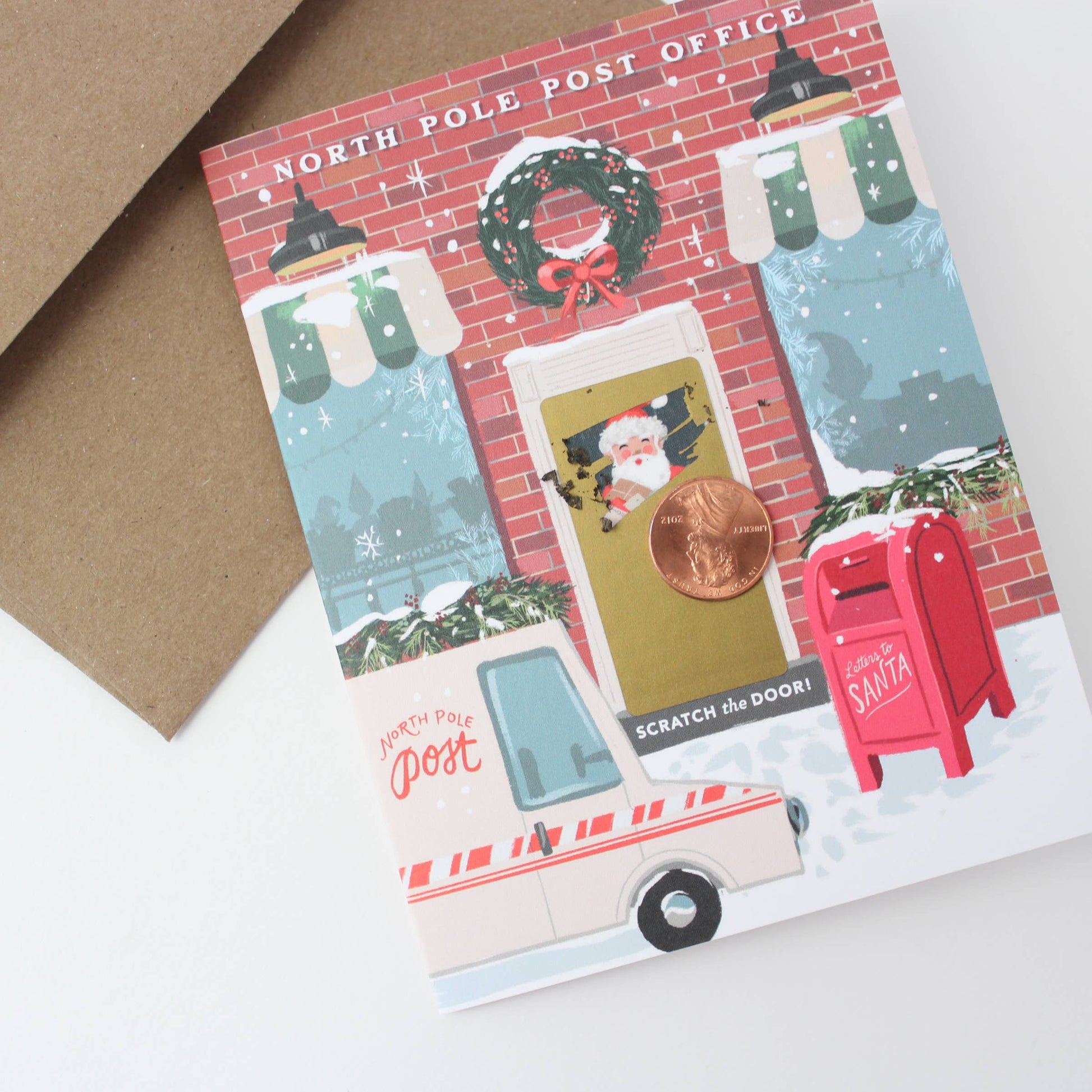 En la portada encontrarás el mensaje "North Pole Post Office" (Oficina de correos del polo norte). El interior de la tarjeta está en blanco, para que puedas escribir lo que desees.